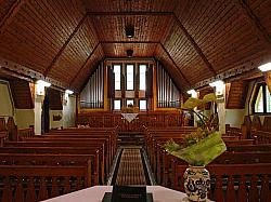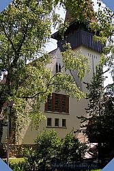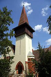 Szeghalmy Bálint tervei alapján épült az 1930-as években. Népi, kalotaszegi stílusjegyekkel és székely kopjafa mintázatos fafaragásaival díszített templom stílusa az erdélyi építészetet idézi. Az épített örökségek közt kiemelt helytörténeti értékként is számon tartott templom építésének 75. évfordulója alkalmából megújult.